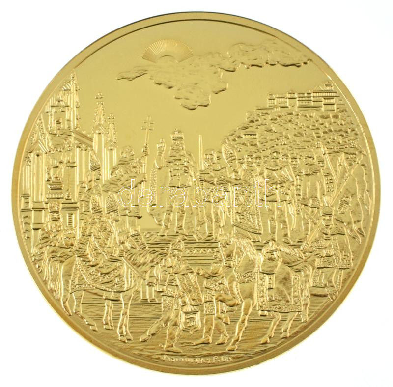 DN "Magyar Aranyóriások - Ferenc József koronázási emlékérem 1892" aranyozott Cu utánveret kapszulában, tanúsítvánnyal (46mm) T:PP