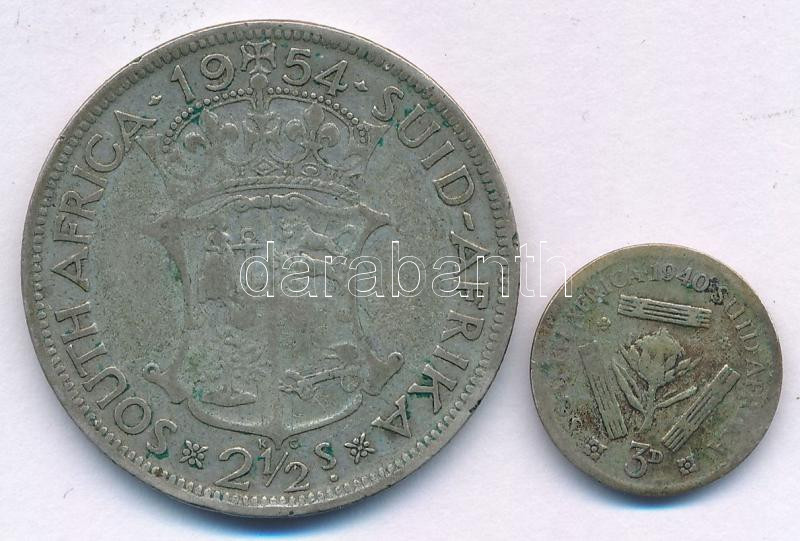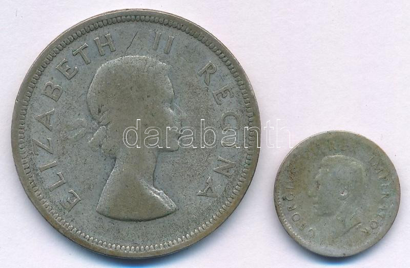 Dél-Afrika 1940. 3p Ag "VI. György" + 1954. 2 1/2Sh Ag "II. Erzsébet" T:F patina
