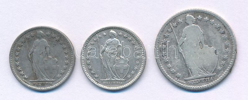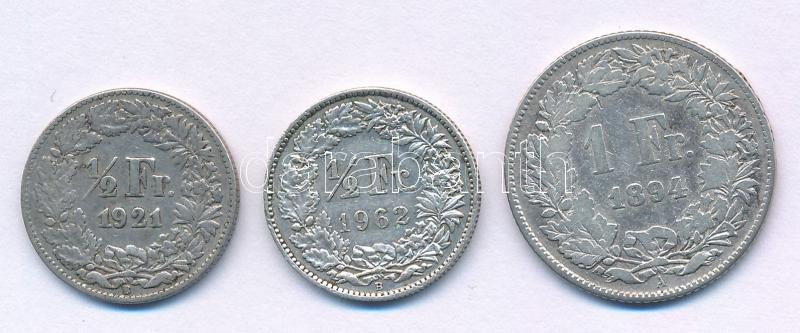 Description: Svájc 1894A 1Fr Ag + 1921B 1/2Fr Ag + 1962B 1/2Fr Ag T:XF-F patina
