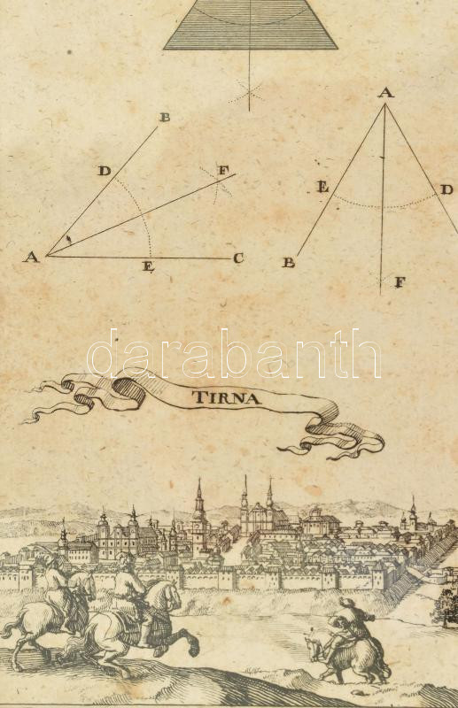 Description: ca 1700 A. Tirna - Nagyszombat [Trnava] várának látképe. rézmetszet megjelent: Birckenstein/Pürckenstein, Anthon Ernst Burckhard von: Auslesener Anfang zu denen höchst=nützlichen Matematischen Wissenschaften...Sammt einem Anhang oder Beschreibung, Derer...Ungarischen Städten... Augspurg, 1731, Mertz und Mayer. 104x160 mm
