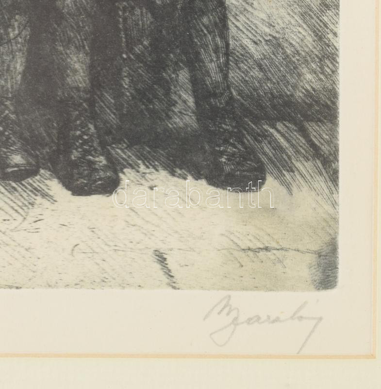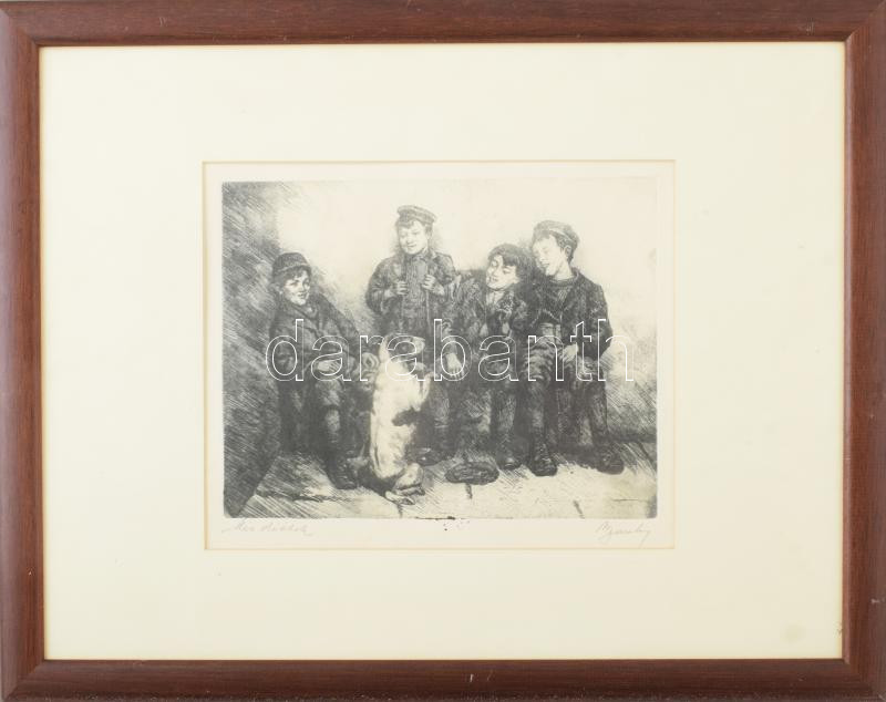 Olvashatatlan jelzéssel: Kisdiákok. Rézkarc, papír, üvegezett fakeretb...