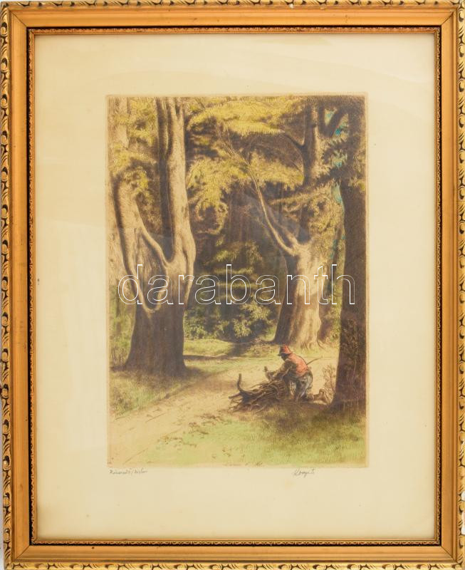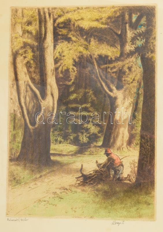 Komjáti-Wanyerka Gyula (1894-1958): Rőzsekötő. Színezett rézkarc, papí...