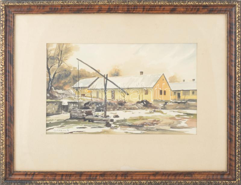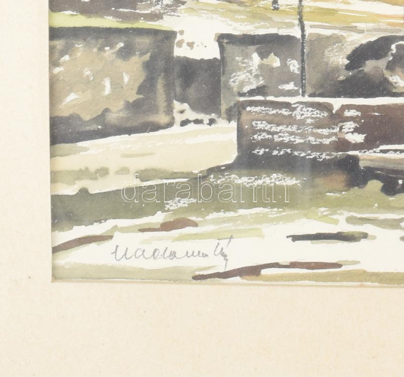 Madarász Tibor (1937-): Vérteskozma télen. Akvarell, papír, jelzett, D...