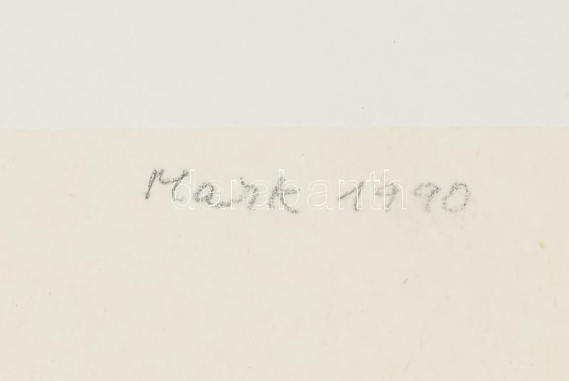 Description: Mark (Márkus), Anna (1928-): Geometrikus kompozíció, 1990. Szitanyomat, papír, jelzett, művészpéldány E.A. jelzéssel. 45x34 cm a szélén, képet nem érő szakadással / screenprint on paper, artist"s proof, signed