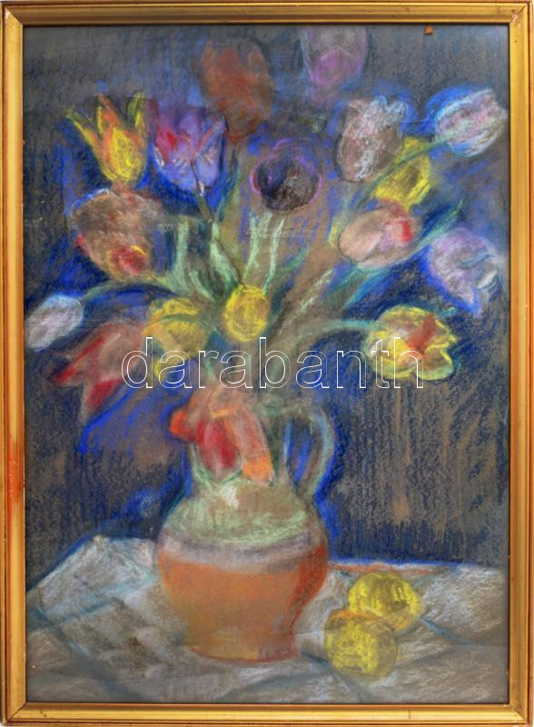 Tallós Ilona (1918-1991): Csendélet. Pasztell, papír, Jelzett balra fent és a hátoldalán. Keretben 68x50 cm