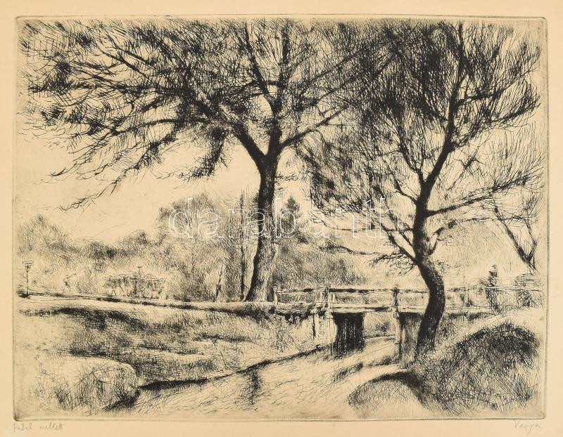 Varga Nándor Lajos (1895-1978): Patak mellett. Rézkarc, papír, jelzett...