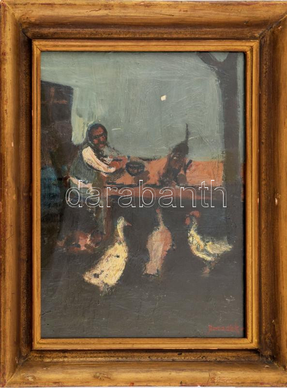 id. Benedek JenÅ‘ (1906-1987): Pihenés. Olaj, vászon, jelzett. Sérült. Hátoldalán Képcsarnok Vállalat cÃmkéjével, mely szerint kiállÃtva a Csók István Galériában. Üvegezett, dekoratÃv, kissé kopott fakeretben, 40×30 cm