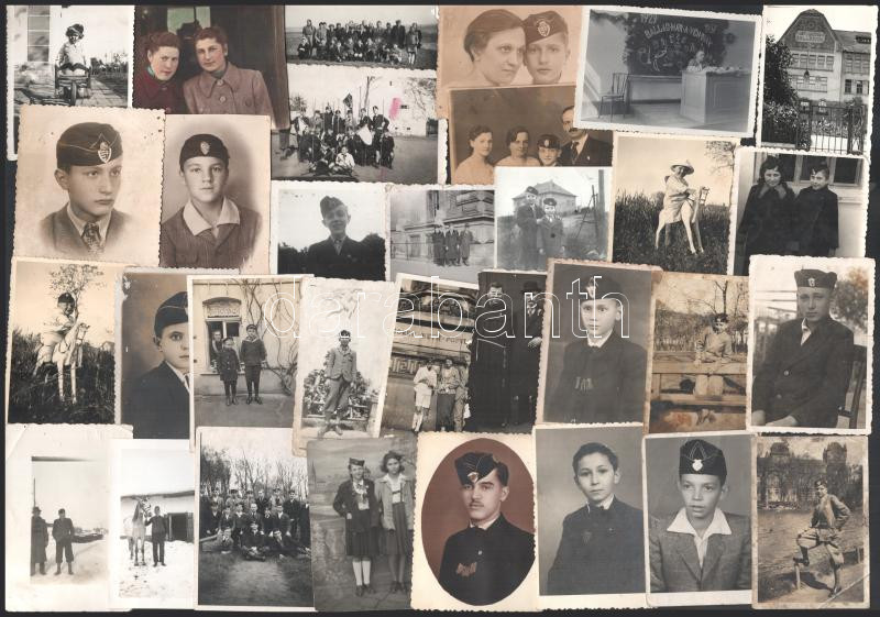 49 db iskolásokat, gyerekeket ábrázoló fotó, 6×6 és 7×10 cm közötti méretekben