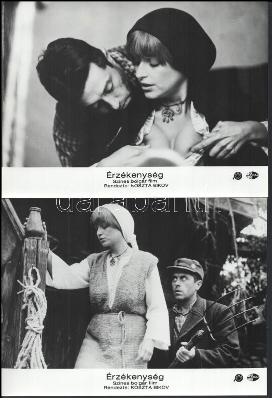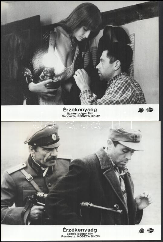 Description: cca 1989 előtt készült, ,,Érzékenység" című bolgár film jelenetei és szereplői, 6 db vintage produkciós filmfotó (vitrinfotó, lobbyfotó) ezüst zselatinos fotópapíron, a használatból eredő (esetleges) kisebb hibákkal, 18x24 cm