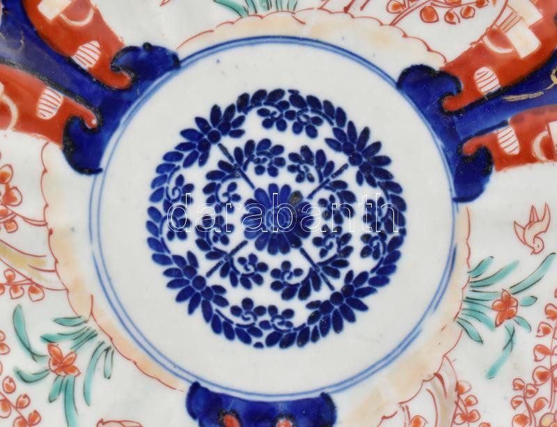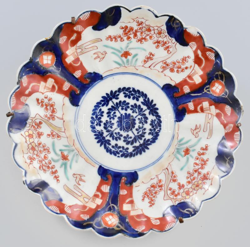 19. sz. vége, Arita japán dísztál, jelzés nélkül, pattanásokkal, fém s...