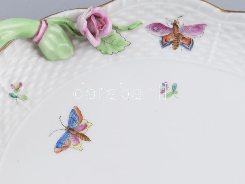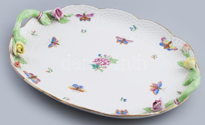 Herendi Viktória mintás kétfüles kínálótálca. 1943. Plasztikus rózsa d...