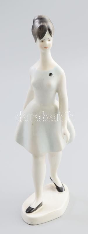 Hollóházi sétáló lány. Jelzett, m: 25 cm