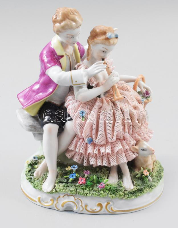 Unterweissbach zenélő pár. Jelzett, restaurált, m: 16 cm