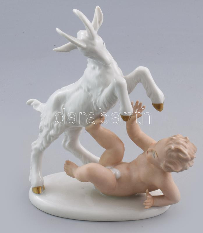 Wallendorf kecskével játszó puttó. Mázas és biszkvit porcelán, jelzet,...