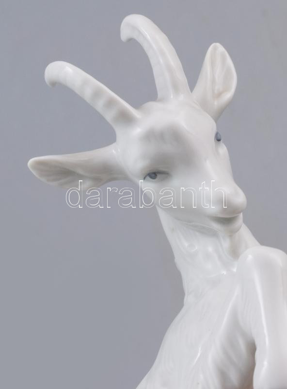 Wallendorf kecskével játszó puttó. Mázas és biszkvit porcelán, jelzet, hibátlan, 18x20,5 cm
