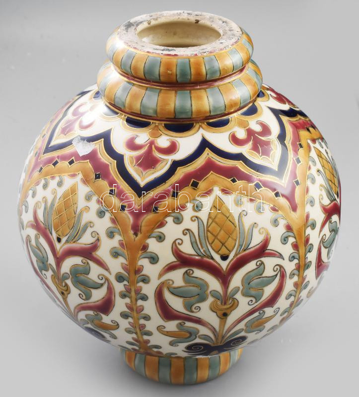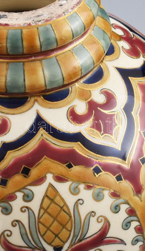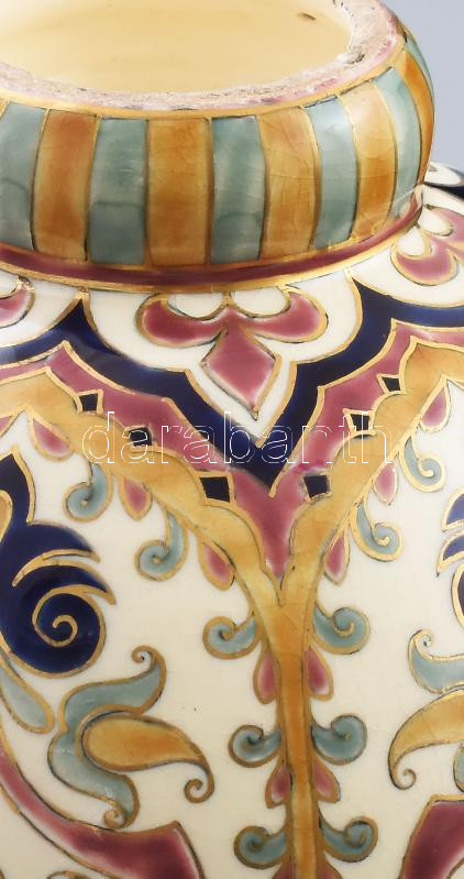cca 1880-1890 Zsolnay historizáló váza, jelzés nélkül, szájánál csiszo...