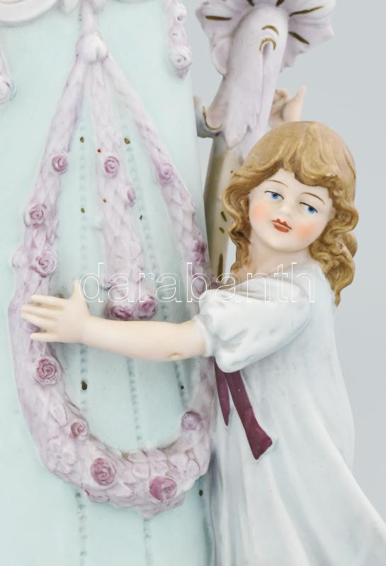 cca 1900, Art nouveau váza, kapaszkodó kislány alakjával. Festett bisz...