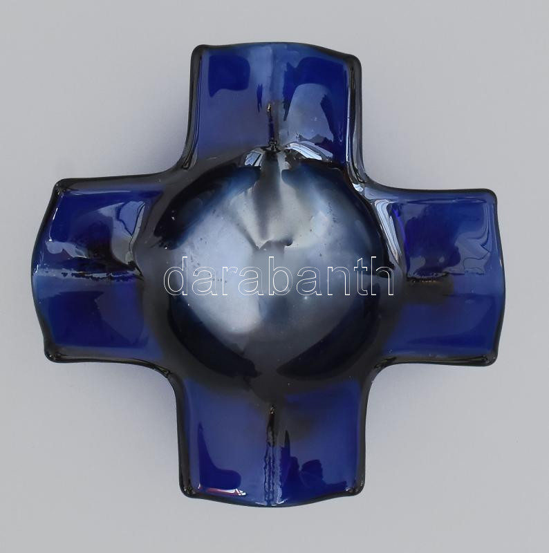Cseh asztaldísz, lüszteres kék színezésű üveg, jelzés nélkül,kis kopás...