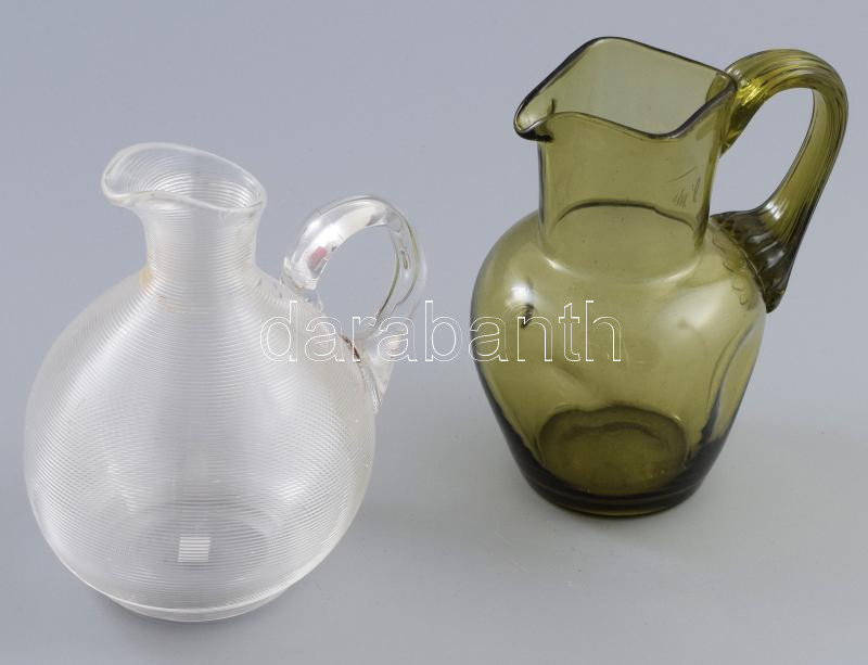 cca 1900, 2 darab üveg pálinka kiöntő, m: 12 cm