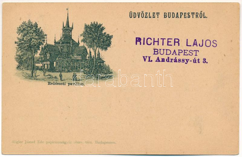 1897 (Vorläufer) Budapest XIV. Városliget, Ezredéves Országos Kiállítás, Erdészeti pavilon. Rigler József Ede litho (EK)