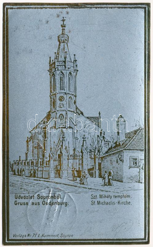 1900 Sopron, Szt. Mihály templom. Nr. 71. L. Kummert, fémes hatású képeslap (r)