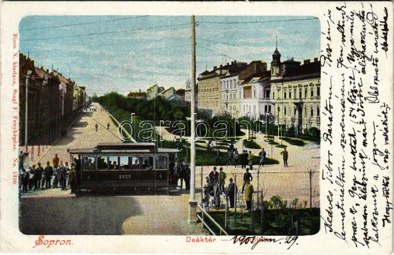 1901 Sopron, Deák tér, S.V.E.V. villamos. Blum N. kiadása. Stagl F. fényképész No. 1310. (EK)