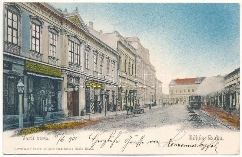 https://www.darabanth.com/en/472-Online-auction/472.0/Postcards/Hungary~1500006/1905-Bekescsaba-Vasut-utca-Leszich-Gabor-Loffler-Ignac-es-Tevan-Adolf-uzlete-varosi-kis~II3165103