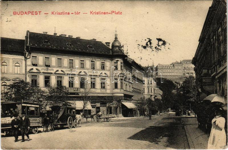 1912 Budapest I. Krisztina tér, cukrászda, omnibusz (kis szakadás / small tear)