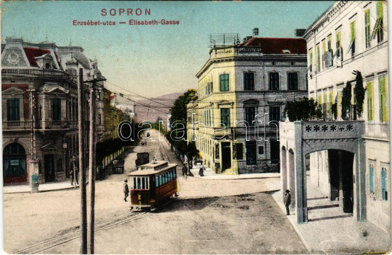 1924 Sopron, Erzsébet utca, villamos (EK)