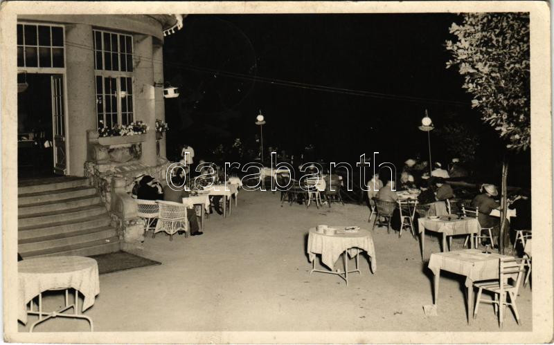 1940 Budapest III. Hármashatárhegy, Kilátó vendéglő, terasz, este