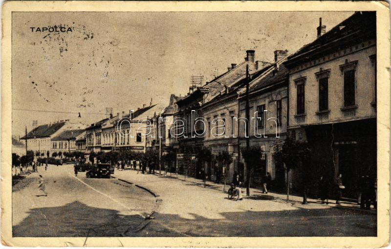 1942 Tapolca, utca, üzletek, automobil (fa)