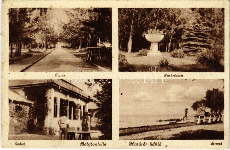 Balatonlelle, Fasor, park,, strand, épület, Határőr üdülő (EK)