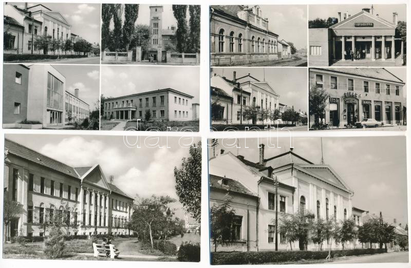 Description: Berettyóújfalu - 4 db MODERN város képeslap: filmszínház (mozi), Bihar szálloda, étterem és büfé, Kálvin tér az általános iskolával, Járási Tanácsház (Képzőművészeti Alap)