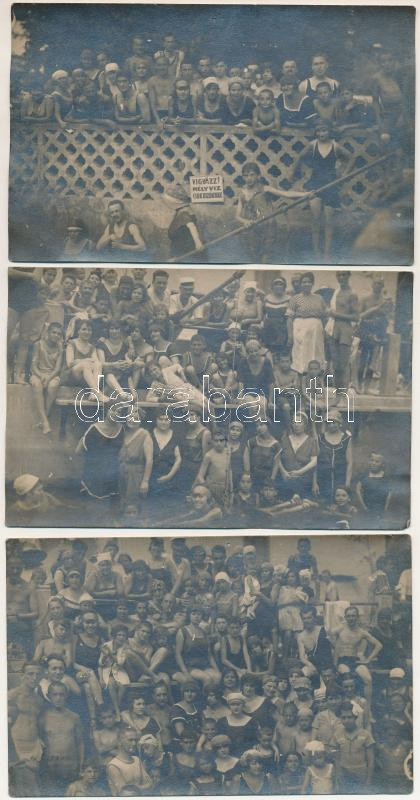 Budapest III. Csillaghegyi strand - 3 db régi fotó képeslap, Sebes Józ...