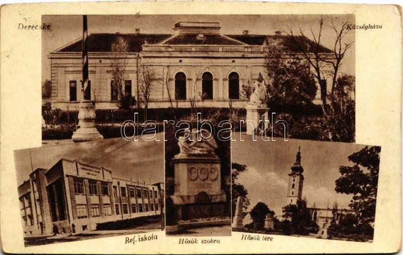 Derecske, Községháza, Református iskola, Hősök szobra, Hősök tere. Han...