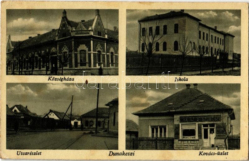 Dunakeszi, utca, községháza, iskola, Kovács üzlete és saját kiadása (Rb)