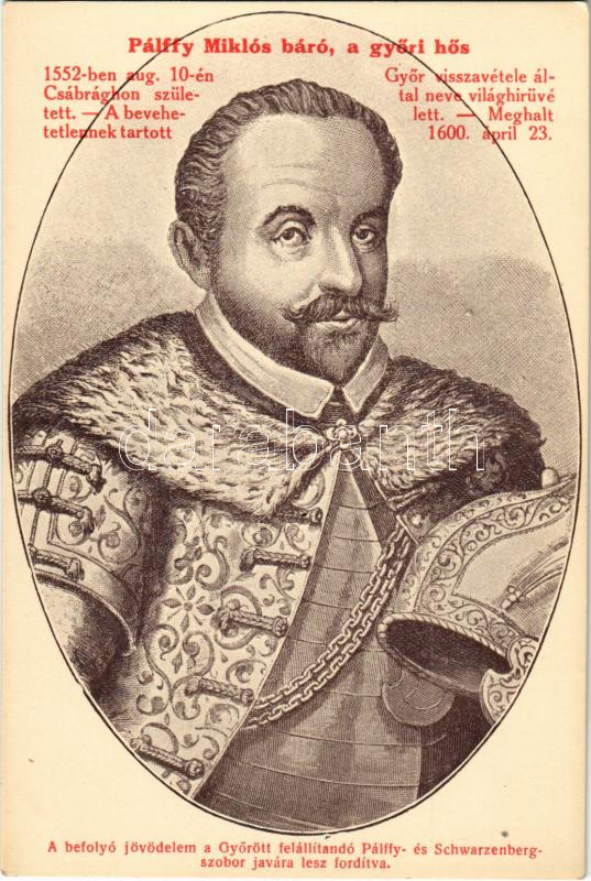Győr, Pálffy Miklós báró, a győri hős. A befolyó jövedelem a Győrött felállítandó Pálffy- és Schwarzenberg-szobor javára lesz fordítva