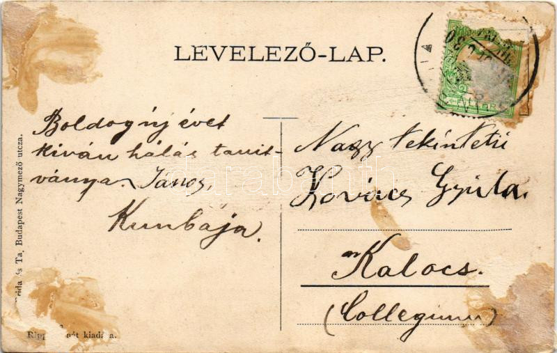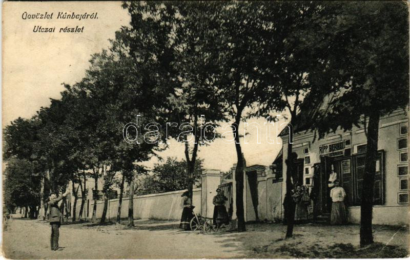 Kunbaja, utca részlet, Ripp Bernát üzlete és saját kiadása (ragasztónyom / glue marks)
