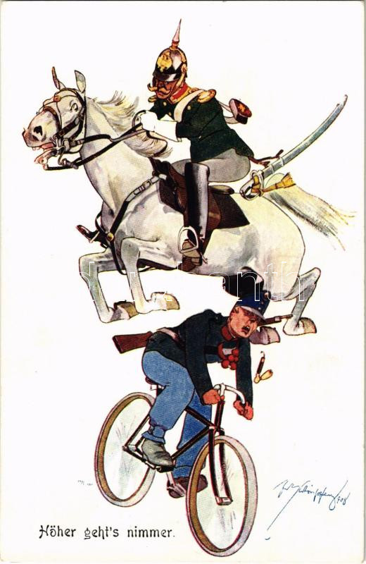 Höher geht's nimmer / K.u.K. military humour art postcard, soldier with bicycle. B.K.W.I. 441-1. s: Schönpflug