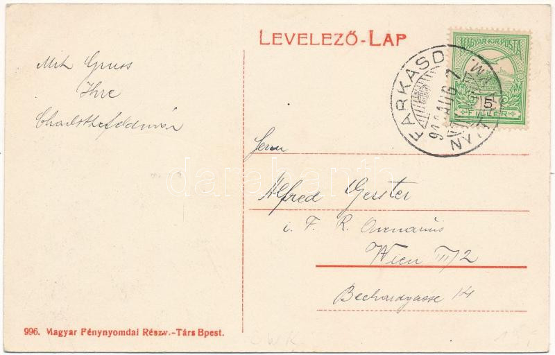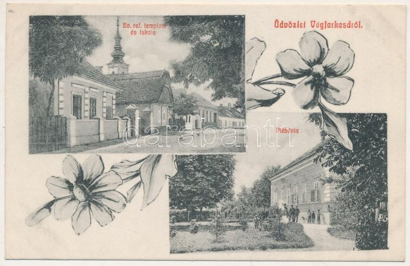 1910 Vágfarkasd, Farkasd, Forcas, Vlkad nad Váhom, Vlcany; Református templom és iskola, plébánia / Calvinist church and school, parish. Floral