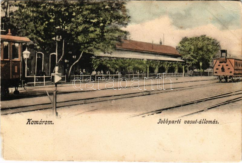 Komárom, Komárno; Jobbparti vasútállomás, vonatok / railway station, train (fl)