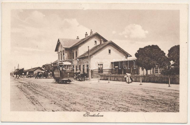 Pozsony, Pressburg, Bratislava; Újvárosi pályaudvar, vasútállomás, vil...