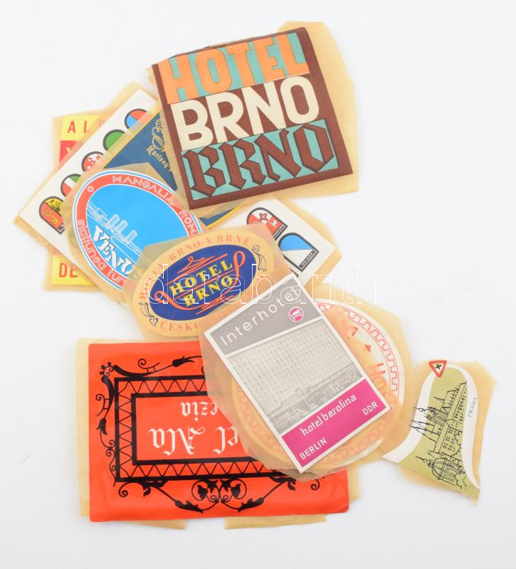 14 db retró külföldi hotelcímke, bőröndcímke