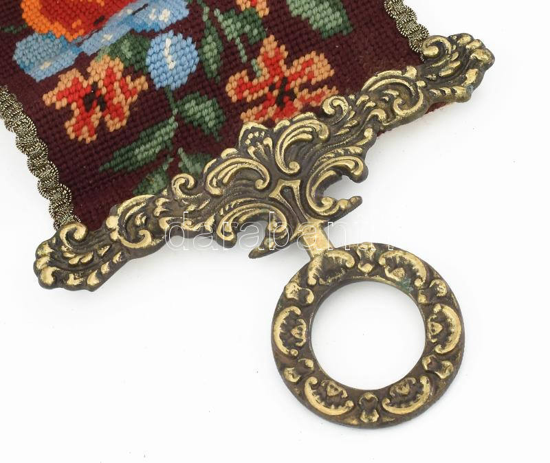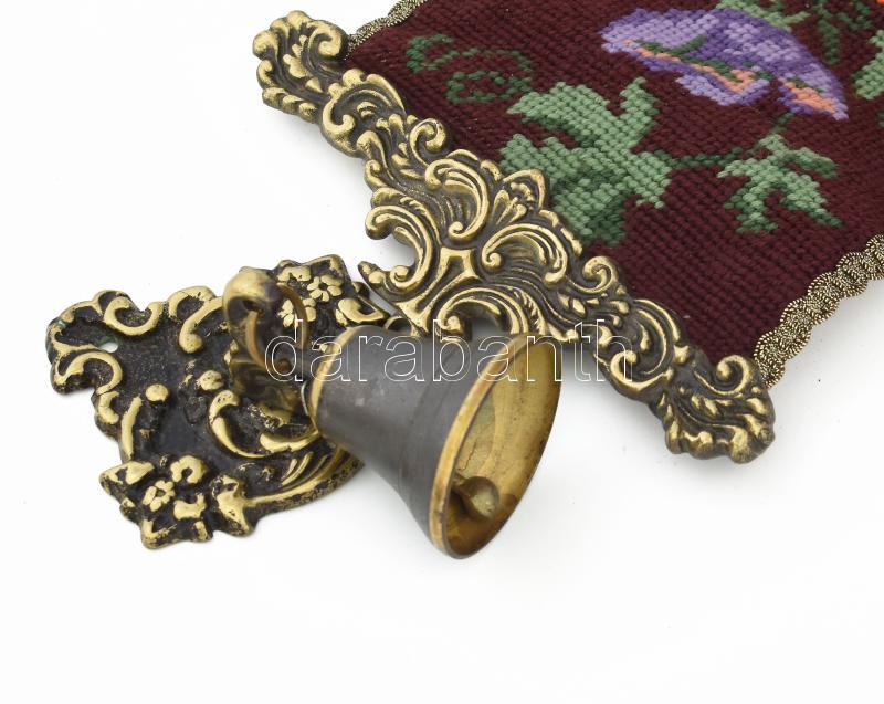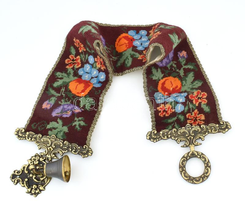 Antik cselédhívó, virág dekorral , dekoratív fém végekkel,115 cm