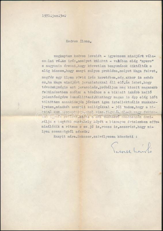 1970 Passuth László (1900-1979) író autográf aláírásával ellátott gépe...