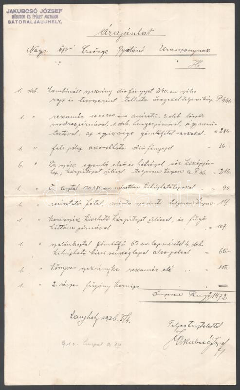 https://www.darabanth.com/en/473-Online-auction/473.0/Art-and-other-collectibles/Documents~500022/1936-Satoraljaujhely-Jakubcso-Jozsef-mubutor-es-epulet-asztalos-2-db-kezzel-irt-arajan~II3210653