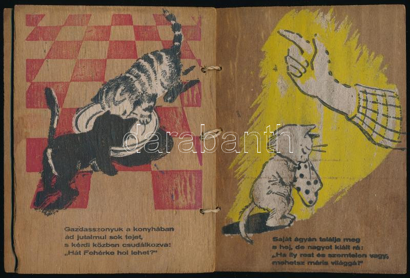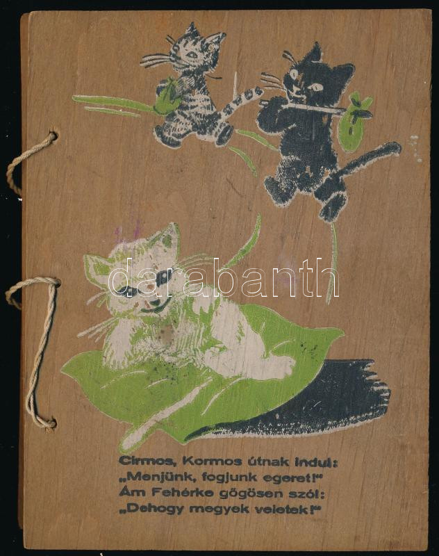 Cirmos-kormos útnak indul. Mesekönyv fa táblákra festve, 6 oldal, 3 tá...