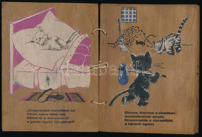 https://www.darabanth.com/en/473-Online-auction/473.0/Art-and-other-collectibles/Flea-Market~500016/Cirmos-kormos-utnak-indul-Mesekonyv-fa-tablakra-festve-6-oldal-3-tablan-12x16-cm~II3205372