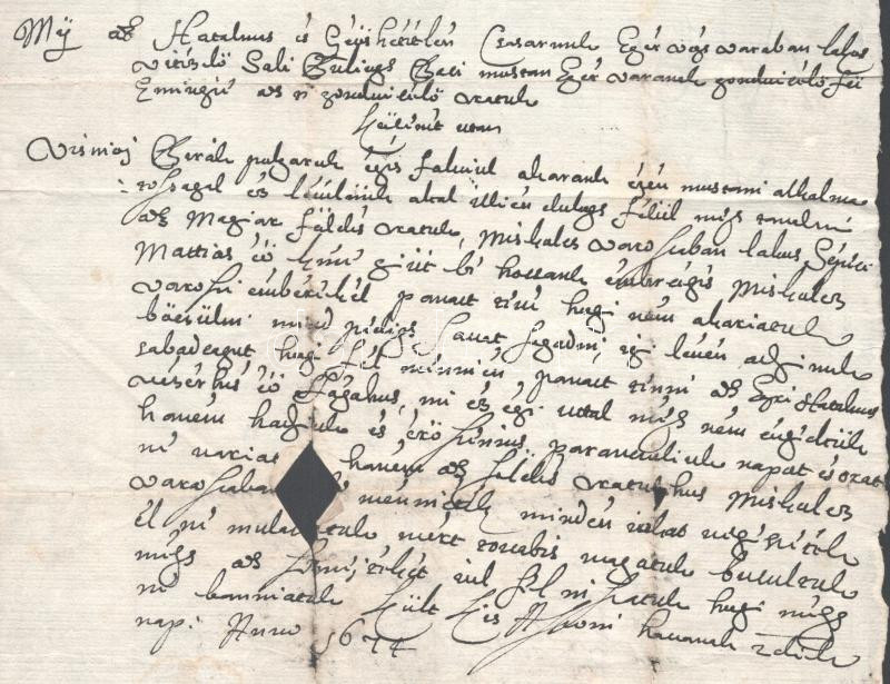 1674 Eger, magyarosodott török személy levele, magyar nyelven Eger városába.