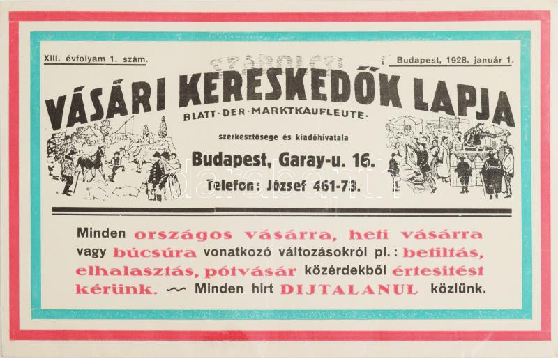 1928 Szabolcsi vásári kereskedők lapja reklám tábla karton 23x17 cm